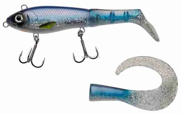 McHybrid to skuteczna i unikalna przynęta hybrydowa, w której dwa światy spotykają się w jednym, miękkim i twardym jednocześnie. Pierwszy bezsterowy wobler/jerk z miękkim ogonem. Dzięki szerokiemu i owalnemu korpusowi zapewnia realistyczny profil przynęty, z wędrującym, eleganckim wzorem pływającym, który przyciąga duże drapieżniki. Przymocuj go do górnego oczka, a będzie pływał głębiej i z szerszymi ucieczkami na boki. Dolne oczko nadaje mu gładszy i płytszy wzór pływania. Jeśli chcesz uzyskać jeszcze bardziej płynną i super płytką prezentację, przełącz się z ogona rippera na ogon twistera.