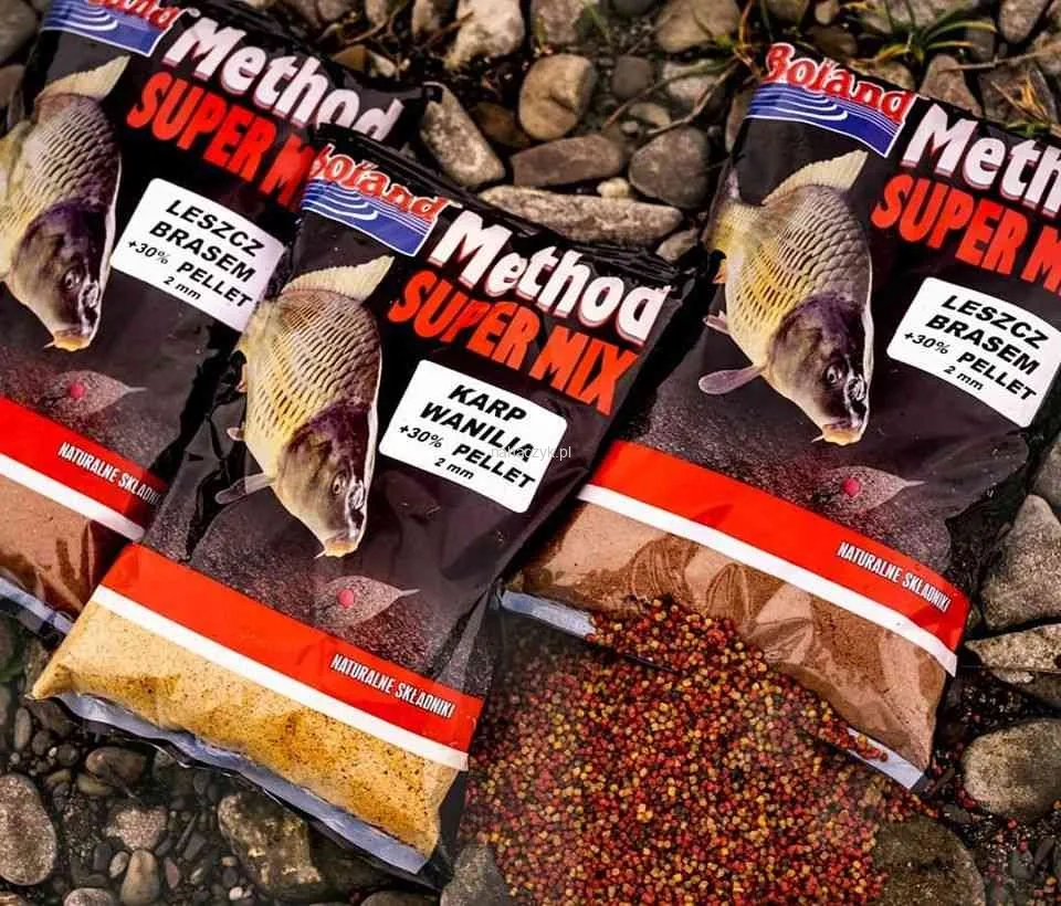 Method Super Mix to zanęta zawierająca aż 30% pelletu 2mm, który w pełni widoczny jest po domoczeniu zanęty
