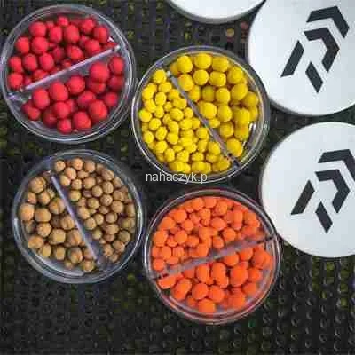 Uniwersalne w zastosowaniu (feeder oraz metody spławikowe) wysokiej jakości przynęty hakowe z serii Daiwa Advantage. Mają neutralną wyporność przez co zachowują się super naturalnie, dzięki czemu ryba podczas wchłaniania przynęty nie nabiera najmniejszych podejrzeń. Dzięki odpowiedniej twardości oraz spłaszczonemu bocznie kształtowi nadaje się idealnie do prezentacji zarówno za pomocą silikonowej gumki do pelletu, igle do przynęt, włosie czy nawet bezpośrednio na haku. W opakowaniu znajdziemy oddzielone od siebie przegródką dwie średnice przynęt.
