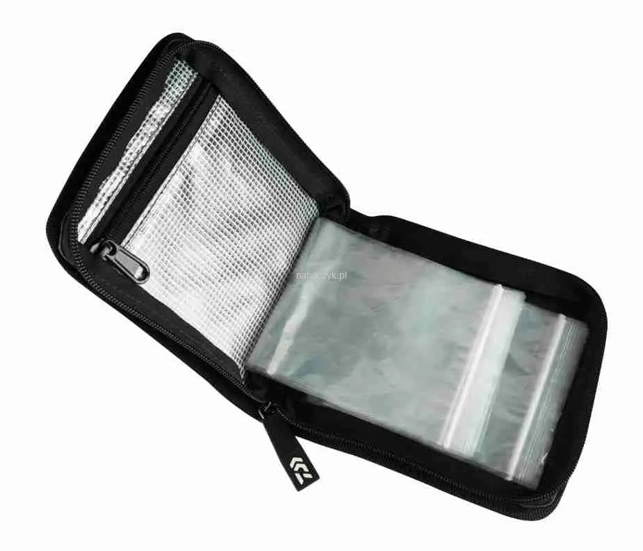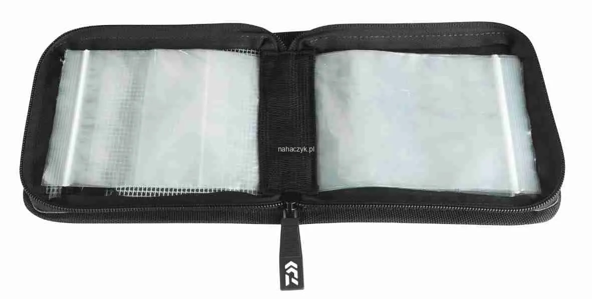 Wysokiej jakości usztywniony portfel na przypony i zestawy z 10 oddzielnymi wewnętrznymi torebkami. Posiada niekorodujący zamek ABS. Wykonany z materiału hydrofobowego.