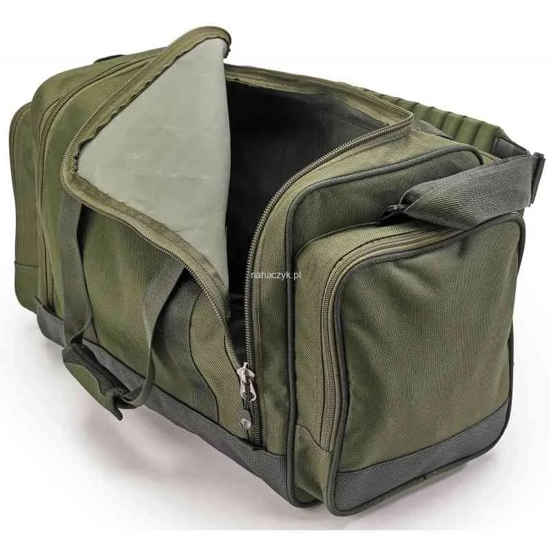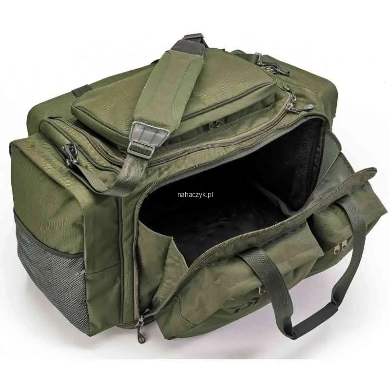 Dwie uniwersalne torby Carryall w rozmiarze M (50l) i L (85l) z programu Infinity pomieszczą niemal wszystko, co potrzebne jest na poważną wędkarską wyprawę. Dzięki przedłużonemu zamkowi główna komora może zostać otwarta od boku dając łatwy dostęp do sprzętu na dnie bez konieczności opróżniania całej torby. Model 50l posiada cztery duże zewnętrzne kieszenie, a wersja 85l siedem kieszeni. Wyposażone w odpinany, wygodny pas na ramię i uchwyty transportowe.