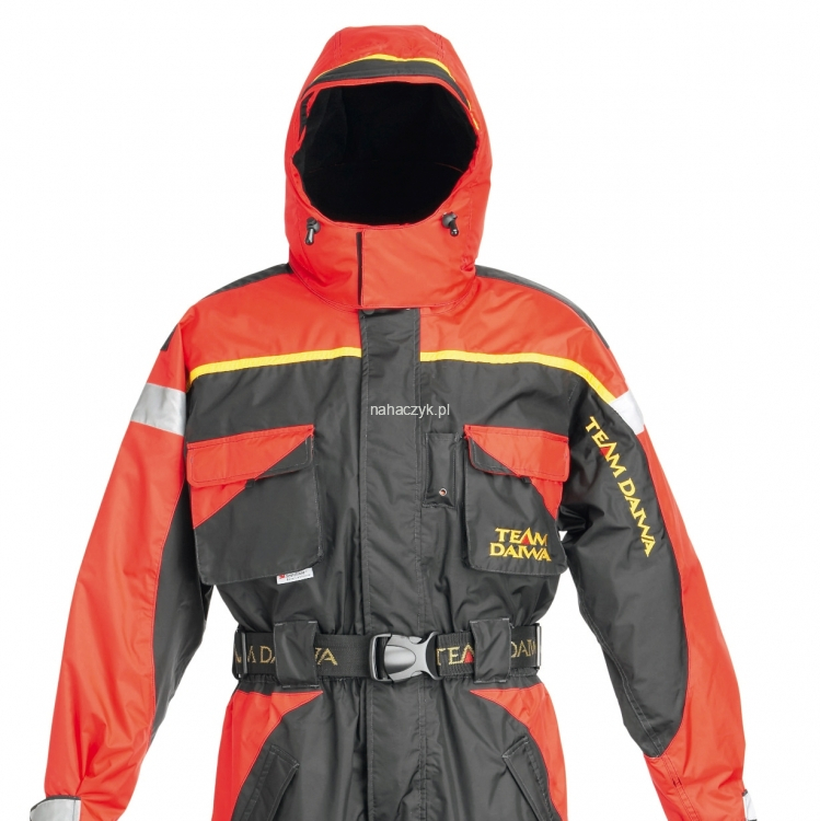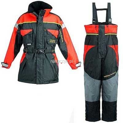 Kombinezon Team Daiwa uderza komfortem i jakością wykonania. Materiał wierzchni Nylon 210D jest wyjątkowo miękki i wytrzymały , w żaden sposób nie ogranicza ruchów. Pływający kombinezon Team Daiwa jest oczywiście absolutnie wodo- i wiatroodporny (wodoodporność 10.000). Dzięki specjalnemu materiałowi wypełnienia Taslon kombinezon gwarantuje idealną izolację i pełnię komfortu nawet w bardzo niskich temperaturach. Wszystkie kieszenie tak skonstruowane, by nie dostawała się do nich woda deszczowa ani śnieg. Oczywiście pływające kombinezony odpowiadają wszystkim europejskim normom konstrukcyjnym dla tego typu odzieży. Kombinezon Team Daiwa dostarczany jest z torbą do transportu.