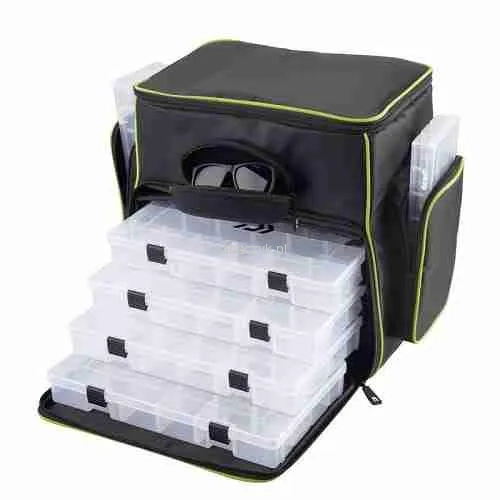 Lekki i wytrzymały plecak z czterema dużymi pudełkami na akcesoria w głównej komorze i dwoma małymi pudełkami z boku. Konstrukcja z przegrodami sprawia, że wyciągając pojedyncze pudełko pozostałe nie osuwają się i nie spadają na dno plecaka. Przegrody mocowane są na rzepy pozwalając na indywidualną regulację przestrzeni. W dużej górnej komorze zmieszczą się różne drobiazgi takie, jak szczypce, kołowrotek, szpule zapasowe itp. Z przodu znajduje się specjalna kieszeń na okulary. Plecy są mocniej wyściełane, aby zapewnić komfort noszenia mocno obciążonego plecaka również na dłuższych trasach.