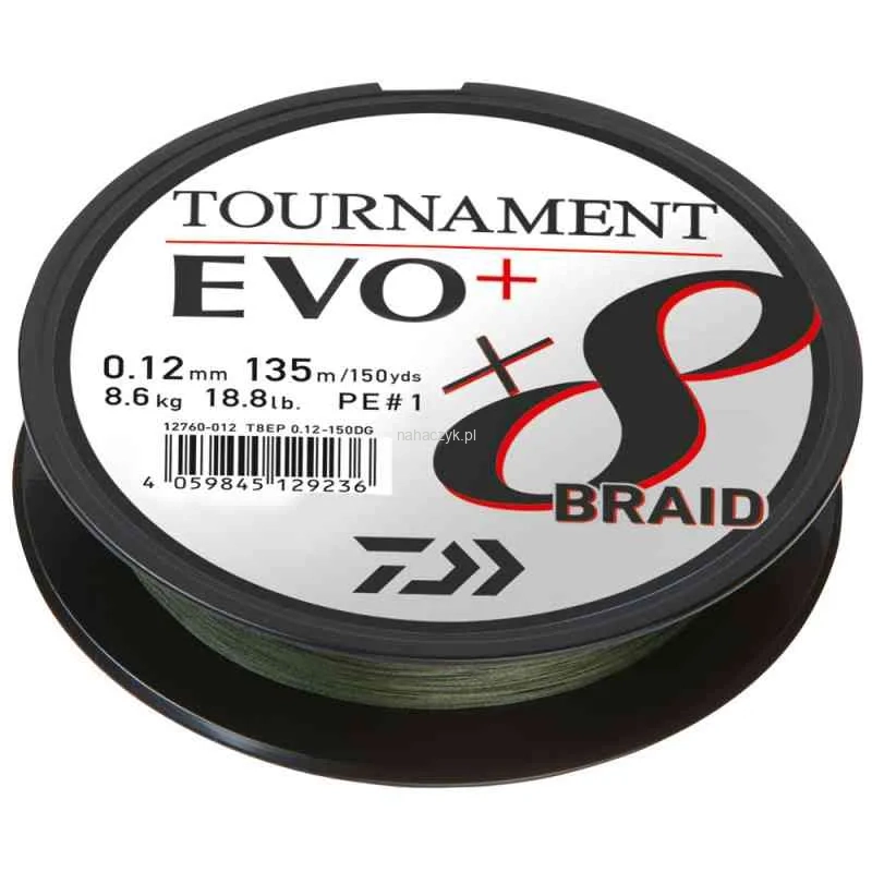 Popularna plecionka Tournament 8 Braid w udoskonalonym wydaniu EVO+. Powłoka powierzchni zyskała większą zawartość silikonu, dzięki czemu generuje jeszcze mniejsze tarcie przy wyrzucie zwiększając osiągane odległości. Dodatkowo zredukowane zostały dźwięki powstające przy przechodzeniu przez przelotki. Nowa Tournament X8 Braid EVO+ technologicznie zalicza się do najbardziej zaawansowanych plecionek dostępnych na światowym rynku. Evo+ nie strzępi się nawet przy częstym i intensywnym użytkowaniu zachowując okrągły splot. W nowych opakowaniach zmniejszyliśmy udział tworzyw sztucznych o 50%. Dostępna w kolorach: ciemnozielonym, chartreuse.