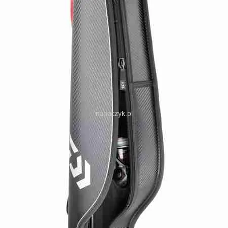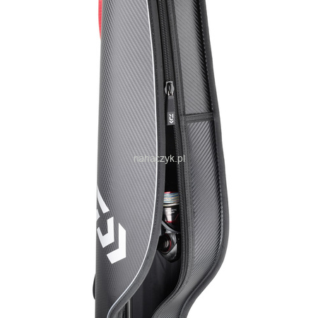 Twardy futerał w stylizacji przypominającej włókno węglowe zapewniający optymalną ochronę wędek. Różne długości, na wędki od 2,40m do 3,00m. Zewnętrzne wzmocnienia sprawiają, że zarówno wędka, jak i kołowrotek są znakomicie zabezpieczone przed wszelkimi czynnikami zewnętrznymi. Ekstra grube, obszyte pasy ułatwiają noszenie torby zapewniając duży komfort również na większych dystansach. Specjalne stopki pomagają postawić futerał również na nierównym podłożu. Jedna mała, dolna kieszeń boczna na zamek do przechowywania drobnych akcesoriów, podpórek itp.