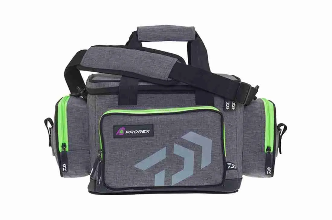 Mała, kompaktowa torba na sprzęt wyposażona w trzy średniej wielkości pudełka Daiwa D-box. Idealna na krótką wyprawę wędkarską, gdy nie potrzeba zbyt dużej ilości sprzętu lub do przechowywania wielu małych akcesoriów i przynęt. Pudełka D-box można przechowywać w torbie poziomo lub pionowo. W razie potrzeby w głównej komorze można przechowywać 2-3 dodatkowe pudełka. W wewnętrznej części pokrywy znajduje się duża kieszeń na dokumenty, zezwolenia lub klucze itp. Duża przednia kieszeń idealnie pasuje do mniejszych pudełek z rodziny Daiwa D-box. 2 wyjątkowo duże kieszenie boczne oferują miejsce na wiele drobnych przedmiotów lub akcesoriów. Wodoodporny materiał jest bardzo trwały i można go łatwo wyczyścić. Gumowane dno zapobiega przedostawaniu się wody. Zamki błyskawiczne wykonane są z materiału ABS i są niezwykle trwałe, nie ulegają korozji.