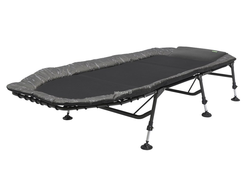 Duże, solidne i mocne stalowe łóżko z sześcioma regulowanymi nogami zakończonymi dużymi nakładkami błotnymi. Posiada wygodną poduszkę z polaru. Atrakcyjnie zaprojektowane z oryginalnym kamuflażem MADCAT CamoFish.