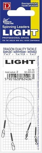 Seria Light to finezyjnie wykonane, delikatne, a jednocześnie bardzo wytrzymałe przypony spinningowe przeznaczone dla wędkarzy łowiących okonie, sandacze i inne ryby w miejscach, w których można spodziewać się kontaktu ze szczupakiem. Idealne do połowu na lekkie przynęty spinningowe, takie jak lekkie obrotówki czy niewielkie przynęty gumowe, są niemal niewidoczne w wodzie, a dzięki wyjątkowej miękkości i elastyczności nie wpływają w żaden sposób na pracę przynęty. Materiały użyte do ich produkcji to najmniejsze przekroje Fluorocarbonu Invisible oraz plecionek stalowych Surflon i Surfstrand, wśród nich najcieńsze w tej chwili na świecie linki stalowe o średnicy zaledwie 0.15 mm produkcji amerykańskiej. Do ich uzbrojenia zastosowane zostały delikatne krętliki typu Rolling Swivel wyprodukowane przez firmę American Fishing Wire i polskie agrafki Dragon Spinn Lock. Wytrzymałości w granicach 3–9 kg.