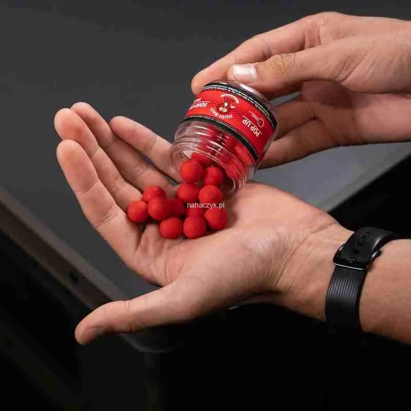 Bardzo intensywny aromat squida z delikatną domieszką owocową. Dodatkową zaletą kulki jest jest mocno czerwona barwa.