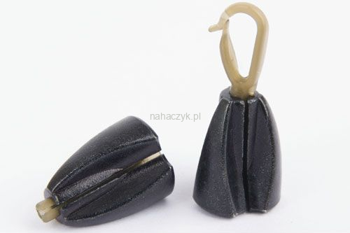 Może być używany jako backlead przelotowy lub też jako tradycyjny backlead z klipsem • Aby zmienić sposób mocowania wystarczy wyjąć wstawkę szybkiej wymiany z ciężarka i w jej miejsce włożyć wstawkę z klipsem, przekręcając raz wstawkę, co zabezpieczy ciężarek przed wypadnięciem • Backlead został tak zaprojektowany, że kiedy utkwi w zaczepie, klips otworzy się i żyłka zostanie uwolniona • Podczas korzystania z wersji przelotowej, backlead został tak zaprojektowany, aby nie przesuwał się zbyt daleko po żyłce. Dzięki temu żyłka znajdująca się blisko przyponu będzie przylegać do dna • Idealny do dociążania żyłki do dna podczas łowienia ostrożnych karpi. Idealny także w miejscach, gdzie występuje duży ruch środków pływających - chroni żyłki przed zerwaniem • Dostępne 3 wielkości - 5 g, 10 g i 15 g • Każde opakowanie zawiera 4 ciężarki, 4 wstawki przelotowe i 4 wstawki z klipsami
