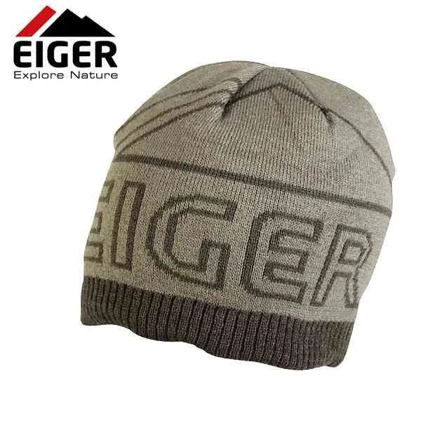 Eiger Logo Knitted Hat Fleece Lining Olive Green