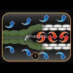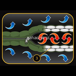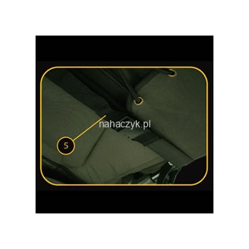 kaptur w górnej i dolnej części oraz środkowy pas mocujący do