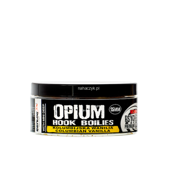 BOILIES OPIUM HOOK GENLOG jest to nowa generacja przynęt. Tonące haczykowe kulki proteinowe wykonane w technologii dzięki której kulki uzyskują specjalną strukturę, która bardzo szybko oddaje atraktory i aromaty zawarte w mieszance, co sprzyja szybszym braniom ryb. Kulki OPIUM skomponowane zostały z najlepszych składników wysokobiałkowych i wzbogacone naturalnymi oleoryzynami. Seria Opium Hook jest to przynęta wyprodukowana między innymi z mączek organizmów wodnych występujących w naturalnym środowisku. Produkt ten odbył szereg testów na różnego rodzaju łowiskach w całej Europie, sprawdzając się znakomicie. Produkt ten polecamy jest przez karpiarzy dla karpiarzy szukających produktu z najwyższej półki w atrakcyjnej cenie. Przynęty te są łowne przez cały rok.