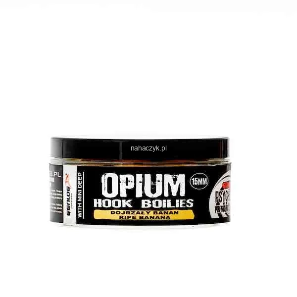 BOILIES OPIUM HOOK GENLOG jest to nowa generacja przynęt. Tonące haczykowe kulki proteinowe wykonane w technologii dzięki której kulki uzyskują specjalną strukturę, która bardzo szybko oddaje atraktory i aromaty zawarte w mieszance, co sprzyja szybszym braniom ryb. Kulki OPIUM skomponowane zostały z najlepszych składników wysokobiałkowych i wzbogacone naturalnymi oleoryzynami. Seria Opium Hook jest to przynęta wyprodukowana między innymi z mączek organizmów wodnych występujących w naturalnym środowisku. Produkt ten odbył szereg testów na różnego rodzaju łowiskach w całej Europie, sprawdzając się znakomicie. Produkt ten polecamy jest przez karpiarzy dla karpiarzy szukających produktu z najwyższej półki w atrakcyjnej cenie. Przynęty te są łowne przez cały rok.