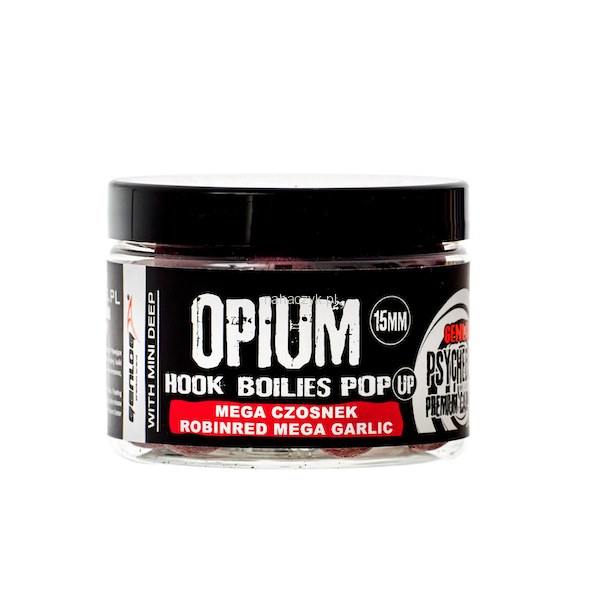 BOLIES OPIUM POP UP GENLOG jest to nowa generacja przynęt, która została wykreowana w celu maksymalnego podniesienia ilości brań. Pływające kulki proteinowe wykonane w technologii dzięki której kulki uwalniają bardzo szybko atraktory i aromaty zawarte w mieszance, co sprzyja szybszym braniom ryb. Seria OPIUM Pop Up jest to przynęta wyprodukowana z mączek organizmów występujących w naturalnym środowisku. Przynęty te są łowne przez cały rok. Produkt ten odbył szereg testów na różnego rodzaju łowiskach europejskich, dając obraz ogromnego potencjału.