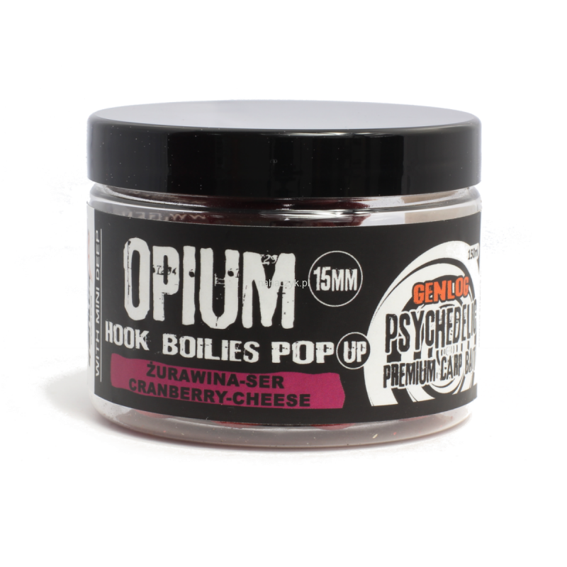 BOLIES OPIUM POP UP GENLOG jest to nowa generacja przynęt, która została wykreowana w celu maksymalnego podniesienia ilości brań. Pływające kulki proteinowe wykonane w technologii dzięki której kulki uwalniają bardzo szybko atraktory i aromaty zawarte w mieszance, co sprzyja szybszym braniom ryb. Seria OPIUM Pop Up  jest to przynęta wyprodukowana z mączek organizmów występujących w naturalnym środowisku. Przynęty te są łowne przez cały rok. Produkt ten odbył szereg testów na różnego rodzaju łowiskach europejskich, dając obraz ogromnego potencjału.