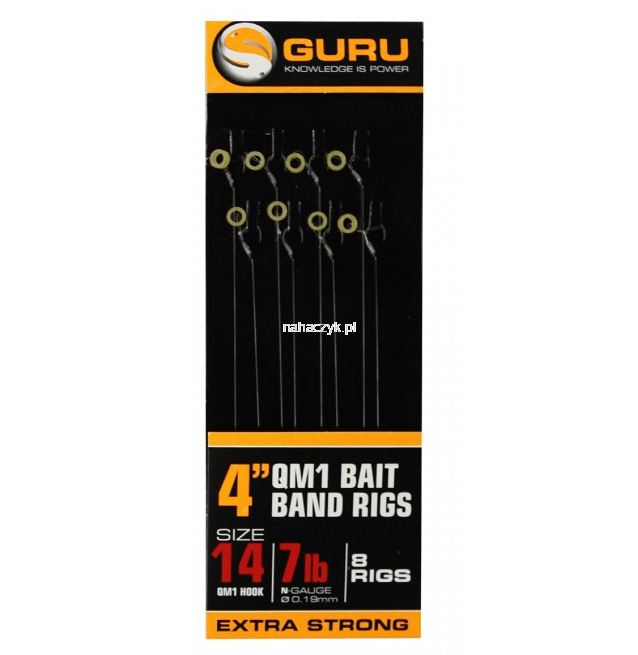 Strona główna » Akcesoria » Guru Bait Bands 4" Size 14 QM1 x 8 (0.19mm)
