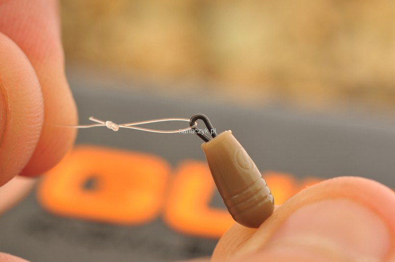 przy pomocy przelotowych koszyków zanętowych. Dodanie obrotowego krętlika