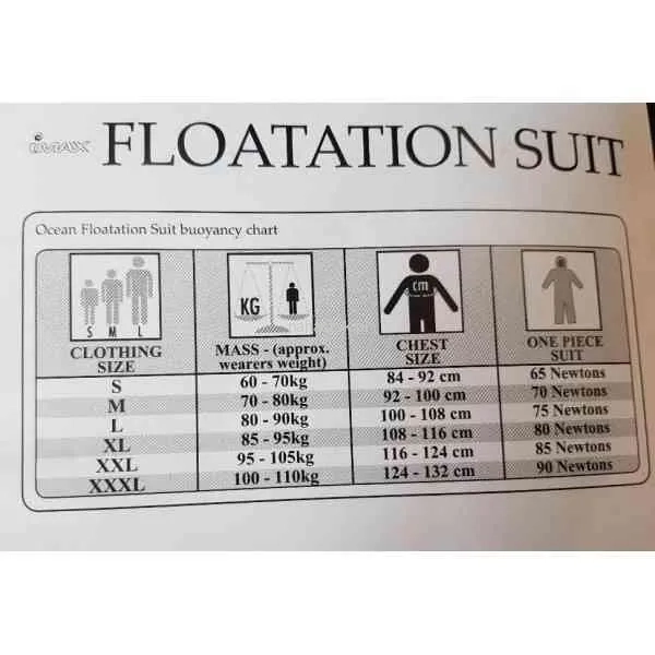 2-częściowy kombinezon pływający spełniający wymagania norm i certyfikatów CE i ISO 12402-5.