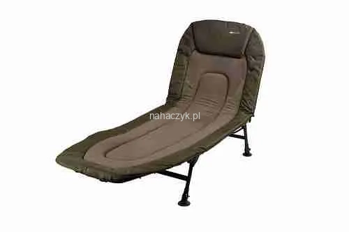 DEFENDER Lite Bedchair to wielofunkcyjne łóżko o kompaktowej konstrukcji, ponieważ może być również używane jako krzesło dzięki systemowi odchylania z wieloma regulacjami. Wyposażone jest w wygodny, wyściełany materac polarowy, lekką stalową ramę z wysuwanymi nogami i odpornymi na błoto stopkami.