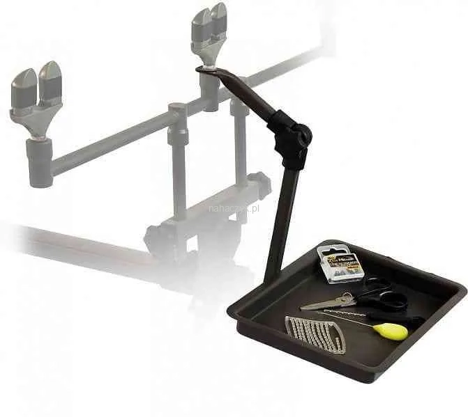 Tacka firmy K-karp przykręcana do każdego rodzaju podów , stojaków i podpórek, bardzo przydatna na wszystkie drobne akcesoria potrzebne przy połowie karpi.
