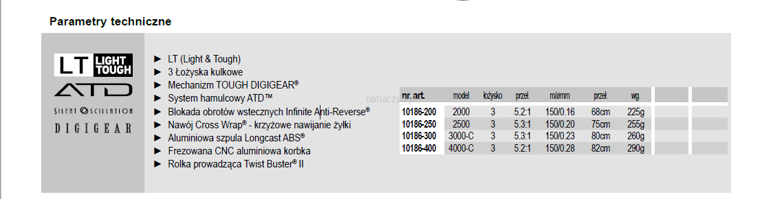 Konstrukcja LT pozwala na użycie mniejszych korpusów kołowrotków w