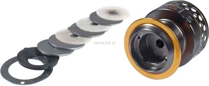 Supermocna przekładnia ze stali nierdzewnej • Profilowana, duralowa szpula o dużej pojemności • 8 łożysk tocznych nowej generacji SUS, w pełni zabezpieczonych przed solą morską (7 kulkowych + 1 rolkowe) • Multitarczowe sprzęgło hamulcowe z tarczami ciernymi o dużej średnicy (szeroki zakres siły hamowania, brak zakleszczeń podczas startu), umieszczone w szpuli kołowrotka • Stalowa, odkuwana korbka o wielkiej mocy • Komfortowy uchwyt korbki • Rurkowy, utwardzany kabłąk, pokryty azotkiem tytanu • System blokady kabłąka w pozycji otwarcia • Bezpoślizgowa blokada obrotów wstecznych (duże, rolkowe łożysko oporowe).