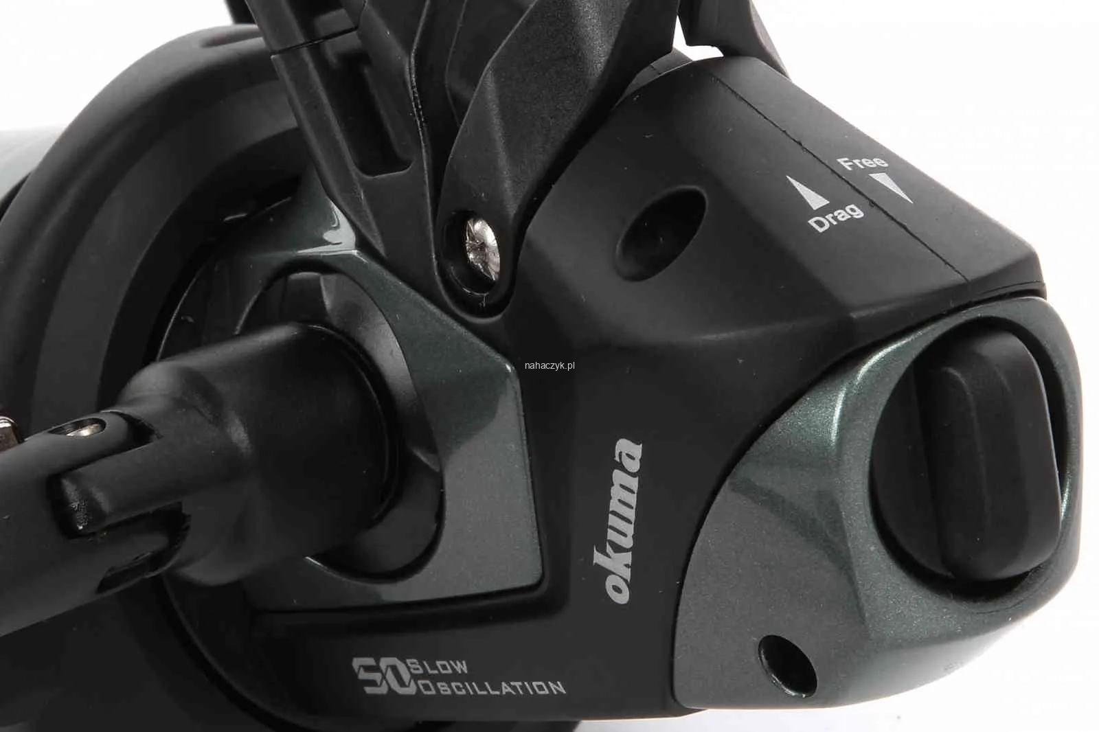 Najwyższy model z oferty kołowrotków karpiowych z wolnym biegiem marki Okuma. We wnętrzu odpornego na korozję grafitowego korpusu pracuje misterna przekładnia o wolnej oscylacji i uzębieniu eliptycznym z precyzyjnie wycinanym z mosiądzu wałkiem zębatym.