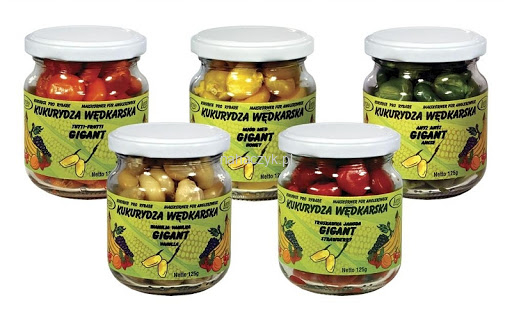 Kukurydza Lorpio wersja Gigant aromatyzowana i barwiona nadaje się do połowu dużych ryb karpi i amurów.Z powodzeniem może być wykorzystywana w metodzie włosowej.Słoik - 125 grAromat Miód.