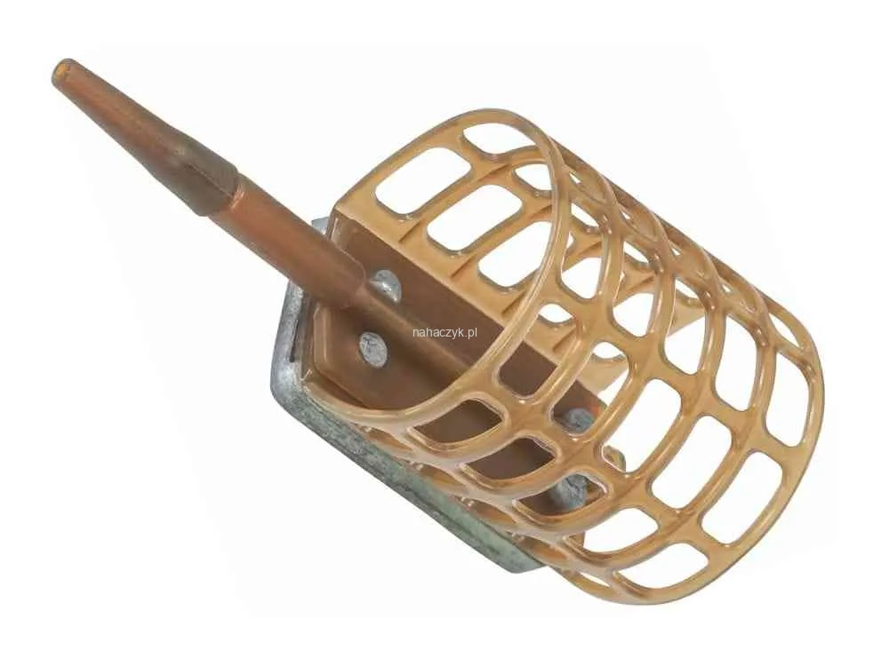 Plastikowy koszyk do precyzyjnego łowienia. Wykonany z mocnego plastiku z ołowianym dociążeniem. Kamuflujący kolor camou brąz idealnie zlewa się z dnem. Żyłka przechodzi przez środek koszyka.