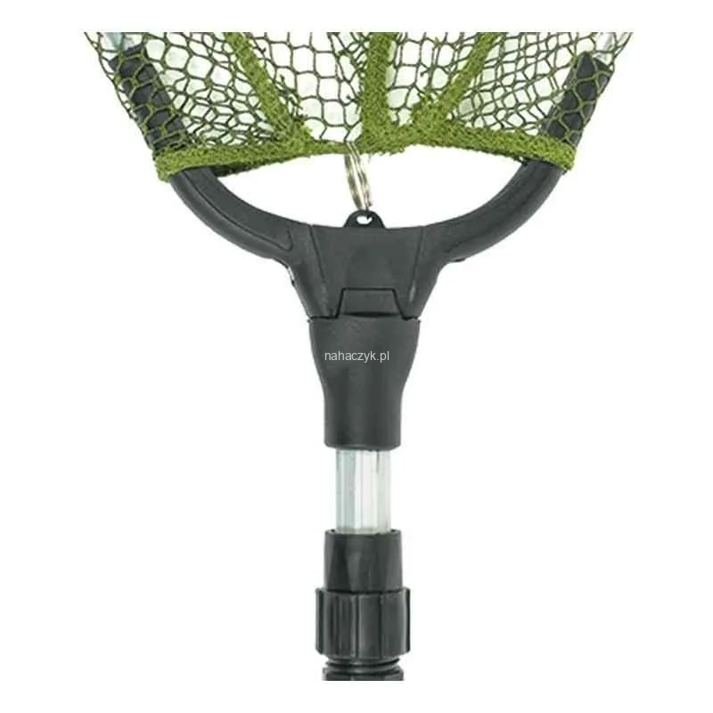 Składany podbierak Super Team Alu. Ramiona kosza z duraluminium, zamek łączący kosz ze sztycą z tworzywa. Teleskopowa, lekka sztyca wykonana z wielokątnego duraluminium, zapewniająca dużą sztywność. Siatka z tworzywa PE ogranicza wydzielanie przykrego zapachu po rybach.