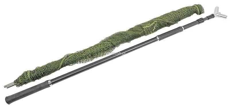 Karpiowy podbierak dla łowców wielkich ryb. Ramiona czaszy z mocnego włókna szklanego, które po podebraniu ryby dają się zdemontować. Nawijamy na nie nadmiar siatki i przenosimy rybę na matę. Zamek łączący ramiona ze sztycą wykonany z metalu. Teleskopowa sztyca z włókna węglowego z uchwytami na obie ręce. W komplecie pokrowiec.