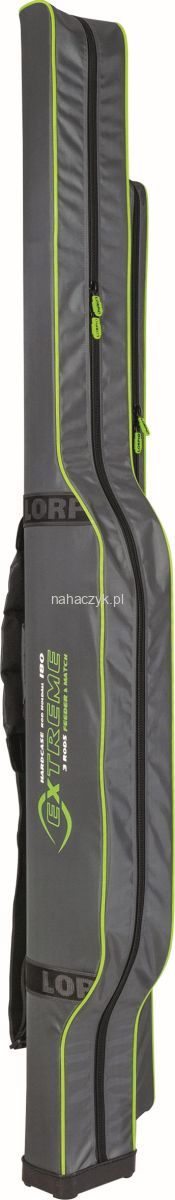 mieści 3 uzbrojone wędki z kołowrotkami, zachowując szerokość standardowego pokrowca na 2 wędki.
