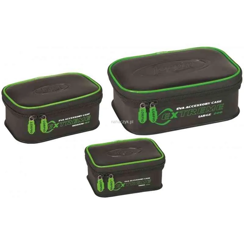 Pudełka na akcesoria wędkarskie wykonane z EVA, z przezroczystym deklem z zamkiem. Praktyczne pojemniki, które idealnie nadają sie do transportu różnych drobnych akcesorii wędkarskich, takich jak: koszyki zanętowe, żyłki, haczyki, ciężarki lub przynęty do method feeder. Pudełka dopasowane rozmiarem do bocznych kieszeni wszystkich toreb EXTREME.