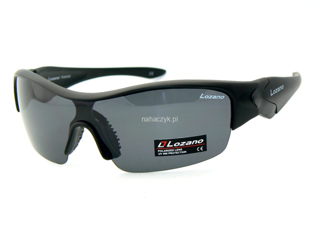 Okulary polaryzacyjne sportowe, czarne błyszczące.