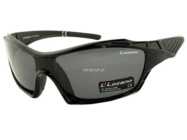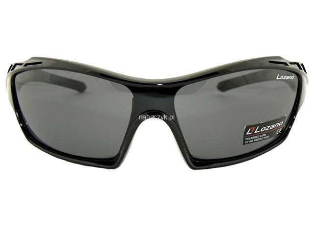 Okulary polaryzacyjne sportowe, czarne błyszczące.