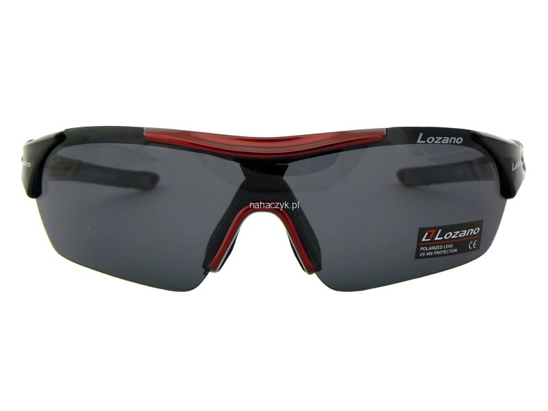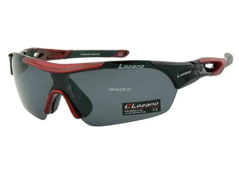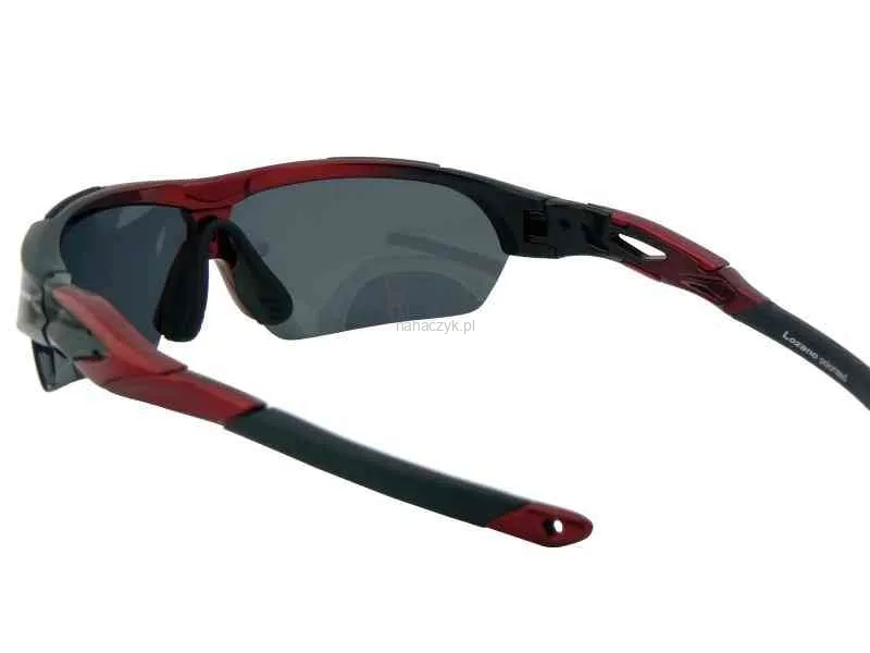Okulary polaryzacyjne sportowe, czarno-czerwone błyszczące.
