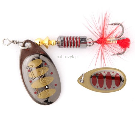 Paletki malowane są z obu stron. Niezależnie od strony, na którą patrzy ryba, kolor blaszki pozostaje taki sam i jest tak samo atrakcyjny, co zwiększa zainteresowanie ryby przynętą i w rezultacie kończy się skutecznym atakiem. Innym ważnym elementem jest trzpień, który wpływa na wagę i zakres wyrzutu przynęty, a także jego stabilność w wodzie. W przynętach Bonnie Blade stosowane są dwa typy trzpieni: kulkowy i cylindryczny. Dzięki głównej kulce, środek ciężkości obrotówki przesuwa się do końca ogona, zwiększając w ten sposób zakres wyrzutu mniejszych modeli. Trzpień cylindryczny większych modeli wykonany jest z mosiądzu z poprzecznymi nacięciami, co niewątpliwie zwiększa atrakcyjność przynęt, a także stabilizuje jego pozycję poziomą podczas przemieszczania się w wodzie. Metalowe łożyska kulkowe i stożek odbijający są przeznaczone do łatwej pracy wokół jego osi i zapobiegają "sklejaniu" się paletki z trzpieniem. Sztywny drut wykonany ze stali nierdzewnej, wywiercony z boków, zapewnia całkowitą swobodę obracania blaszki przy minimalnym tarciu. Wszystkie przynęty Bonnie Blade posiadają chwost, który również pełni rolę stabilizatora poziomego, oraz potrójną kotwiczkę. Podstawą obrotówki jest drut ze stali nierdzewnej. Sześć rozmiarów i osiem kolorów pozwalaja na znalezienie właściwej przynęty w każdych warunkach. Doskonałe na okonia, szczupaka, pstrąga lub łososia.