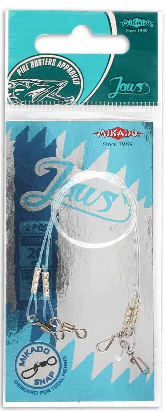 Najwyższej jakości przypony wykonane z fluorocarbonu. Doskonale sprawdzą się wszędzie tam gdzie podczas sandaczowania czy łowienia okoni możemy spodziewać się przyłowu szczupaka. Solidna konstrukcja została wyposażona w krętlik rolkowy i doskonałą agrafkę „Mikado” snap. Przypony dostępne w szerokiej gamie długości i wytrzymałości.