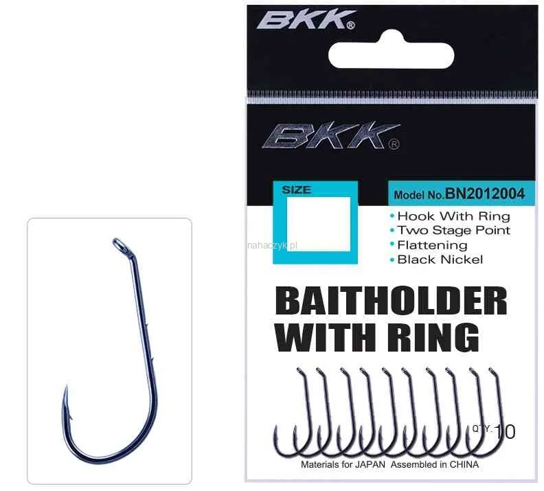 Haki Baitholder charakteryzują się szerokim trzonkiem z mikrozadziorami oraz niezwykle ostrym grotem haczyka. Ten zakończony oczkiem haczyk sprawdzi się nie tylko do połowu na przynęty pochodzenia naturalnego oraz spinningowej metody bocznego troka