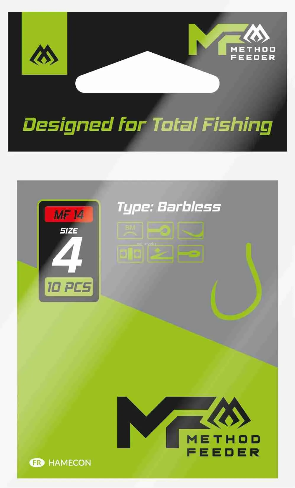 Niezwykle mocne i chwytne haki MF14 w wersji bez zadziora. Idealny wybór na łowiska komercyjne i klubowe, na których użycie zadziorów jest zabronione. MF14 są bardzo wytrzymałe, piekielnie ostre oraz pewnie trzymają rybę, nawet podczas długiego holu.