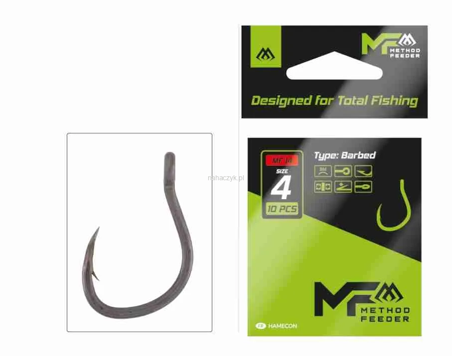 MF14 to nowe pogrubione haki zaprojektowane z myślą o dużych rybach łowionych metodą, bombką lub pellet wagglerem. Charakteryzują się agresywnym kształtem, wytrzymałością oraz pewnym trzymaniem zaciętej ryby. Wykończone matowym kolorem i zadziorem.