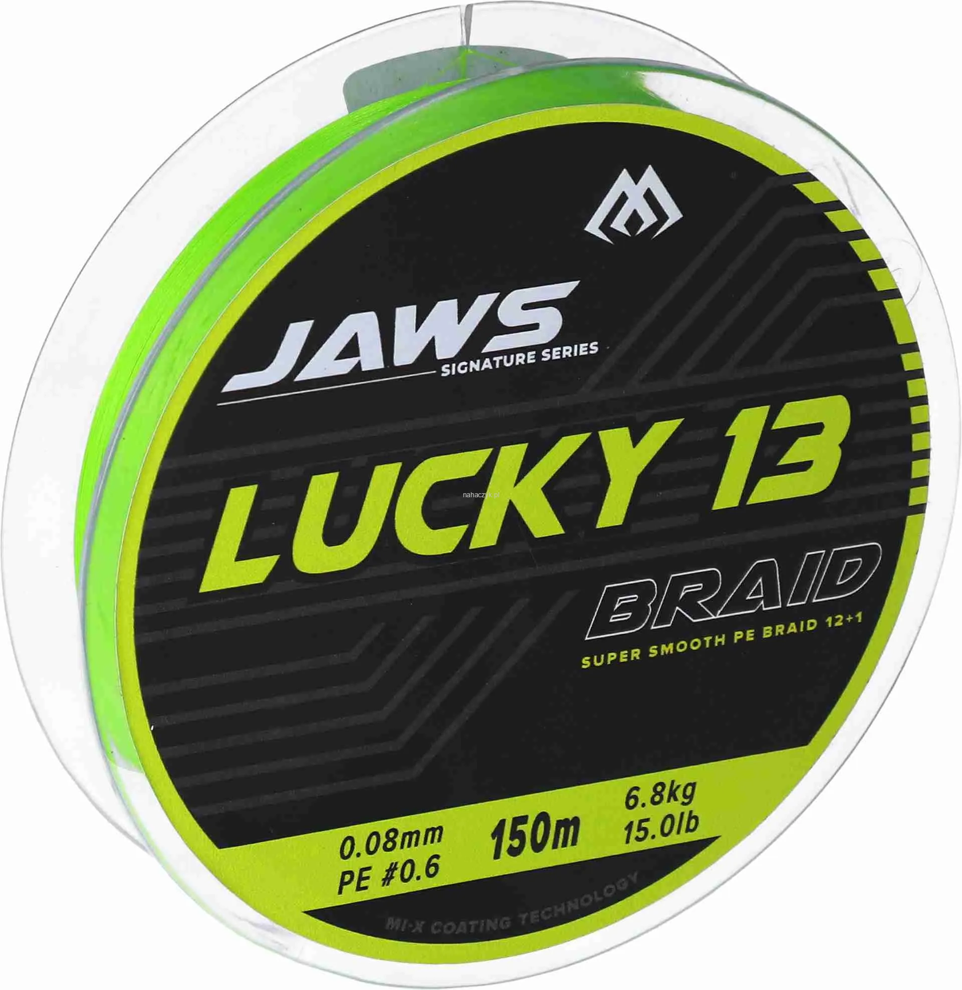Jaws Lucky 13 to zaawansowana technologicznie plecionka zbudowana z trzynastu włókien. Rdzeń linki został zaprojektowany z materiału FiberCore, który gwarantuje dużą moc linki oraz zapobiega przed przetarciem plecionki podczas ekstremalnych przeciążeń.