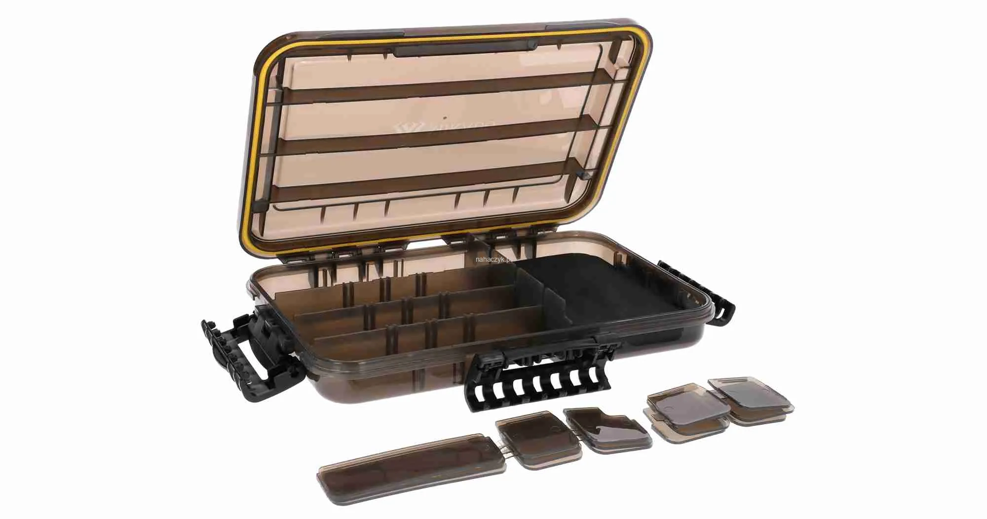 Jednostronne, 100% wodoodporne, czarne pudełka wędkarskie z uszczelkami. Dolne przegródki zostały wyłożone specjalnie naciętą pianką. Posiadają również klasyczne, regulowane przegródki bez pianki do przechowywania wszelkiego rodzaju przynęt.
