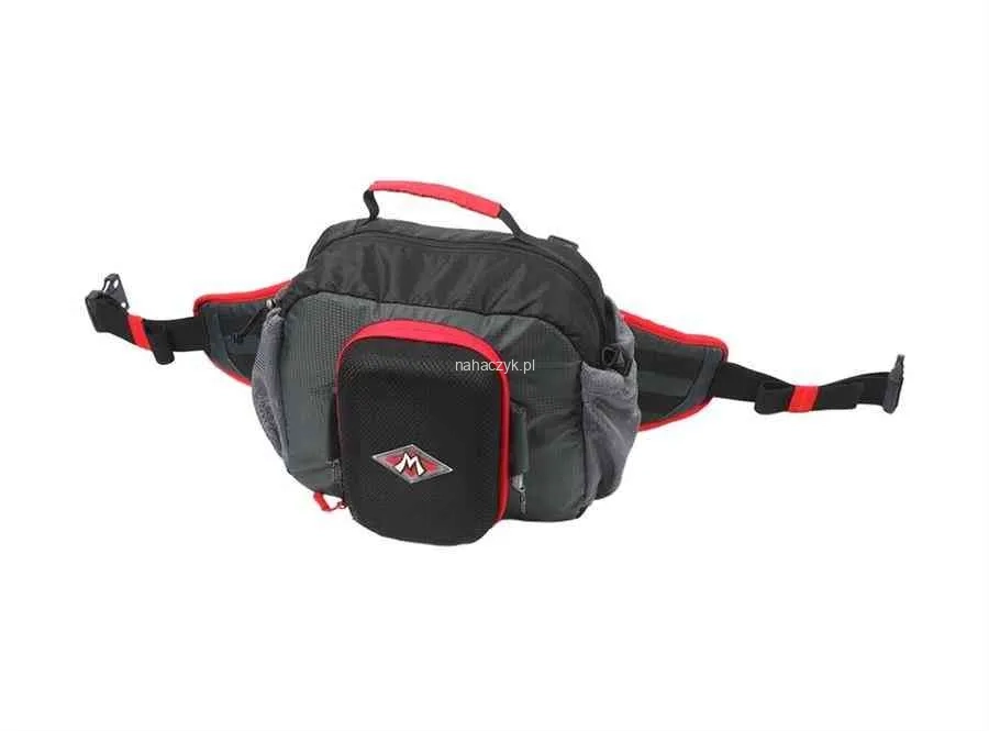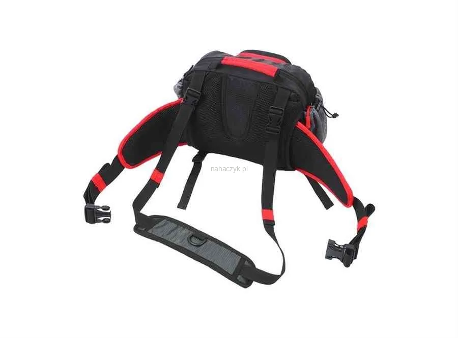 Duża i pojemna komora główna mieści nawet kilka pudełek, przednia usztywniana kieszeń pozwoli na spakowanie dodatkowego pudełka lub innych akcesoriów, a dwie siatkowe kieszenie boczne wręcz stworzone są by przetransportować butelkę wody czy dodatkowe akcesoria. Kolejnym atutem są specjalne mocowania do szczypiec i akcesoriów. Pas wyposażyliśmy również w dodatkowy pasek dający możliwość noszenia go jako cheastpack lub klasyczną torbę.
