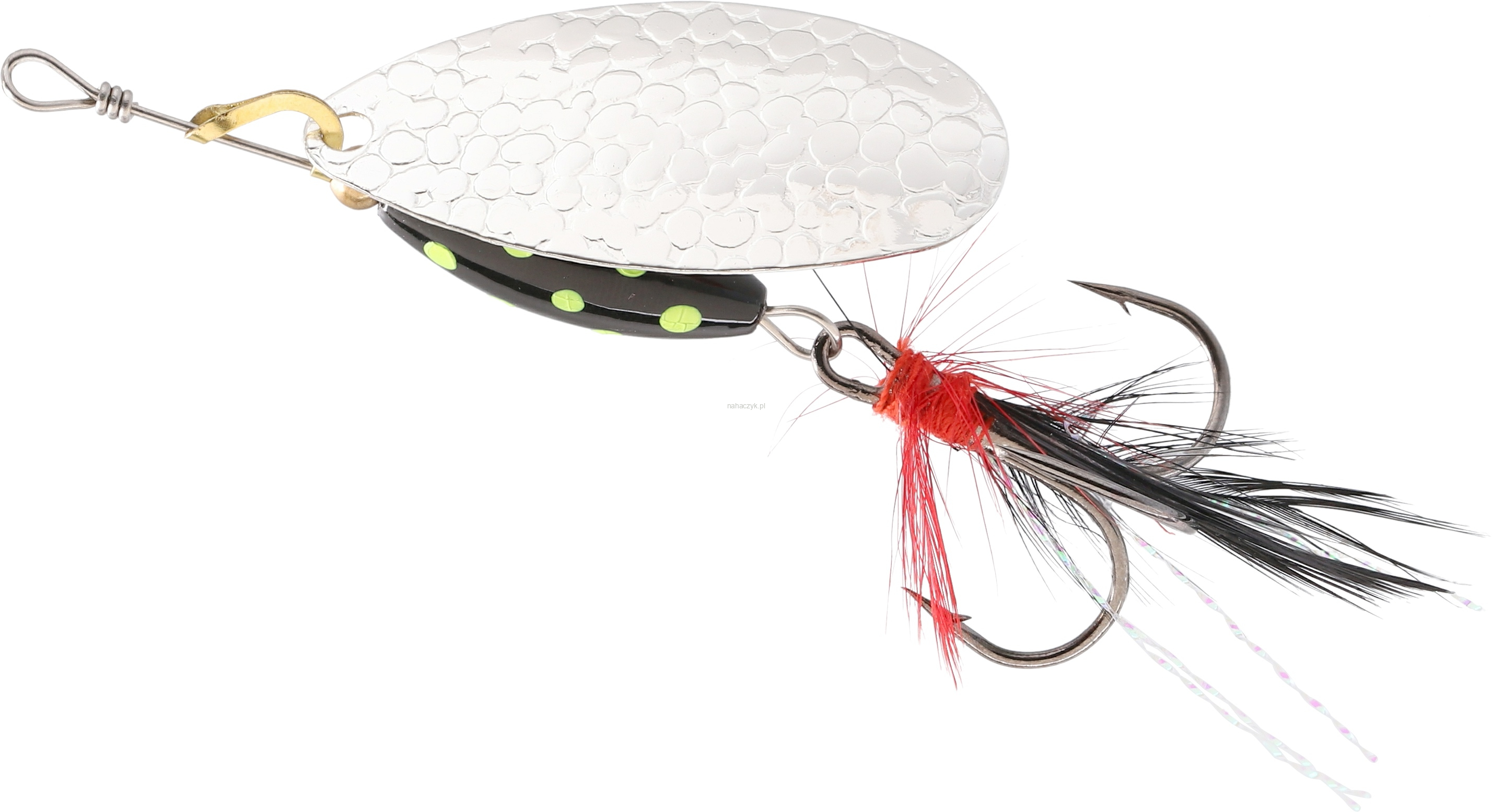 Błystka obrotowa o szerokiej paletce oraz cięzkim, malowanym korpusie, dzięki któremu możemy obłowić nagłębsze miejsca w rzece oraz podwodne górki. Dodatkowy chwost na kotwiczce podnosi atrakcyjność oraz zwiększa skuteczność zacięcia.