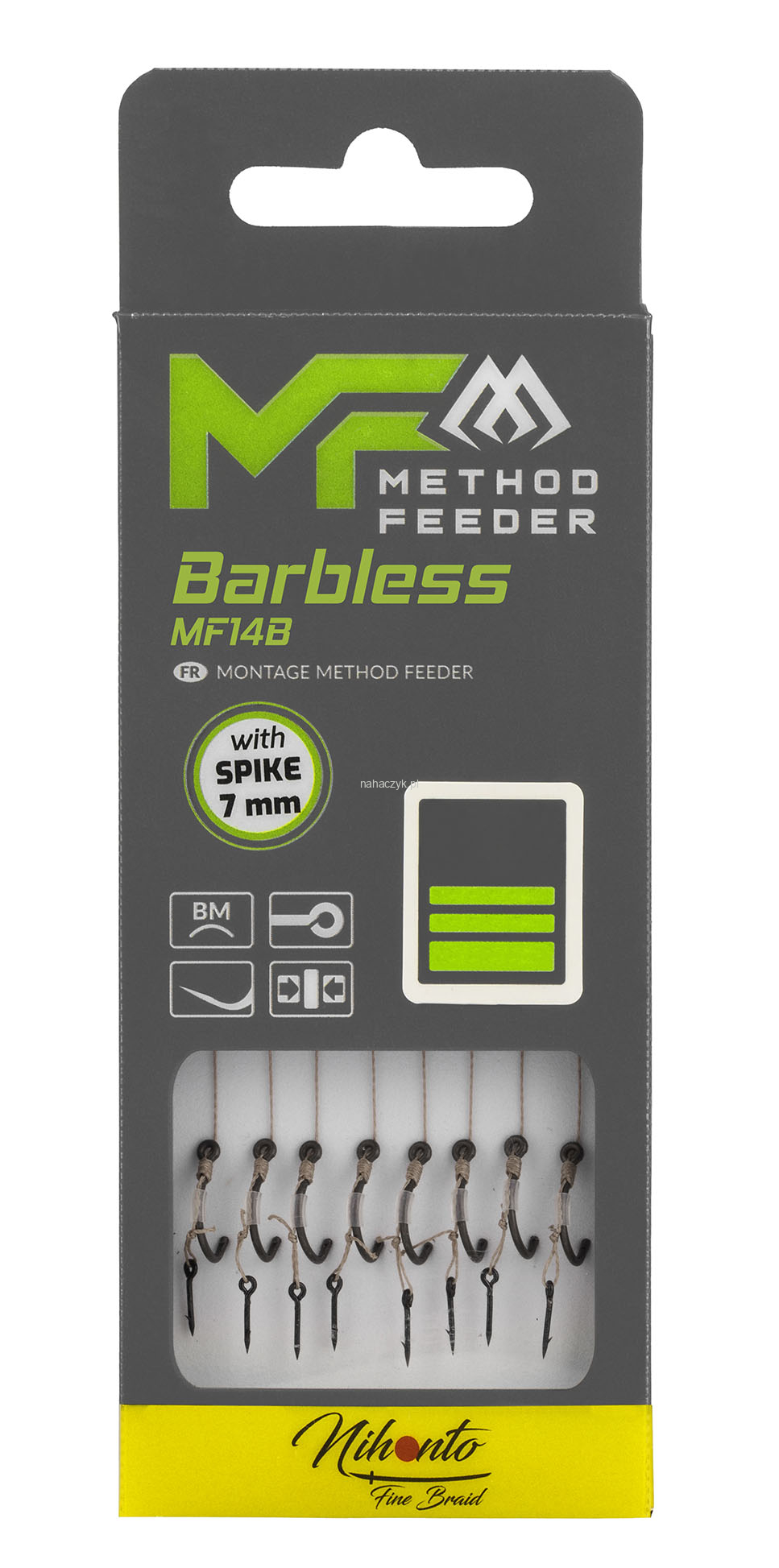 Gotowe przypony do Method Feeder, uwiązane na wzmocnionych i niezwykle ostrych, bezzadziorowych hakach MF14. Gwarantują pewne trzymanie nawet największych okazów. Zakończone gumką, igłą lub push stopem. Dostępne w wersji na plecionce lub żyłce.