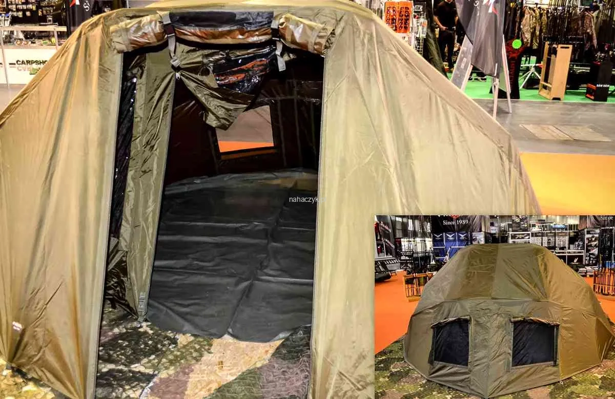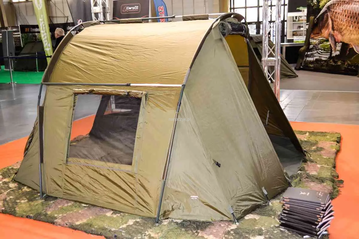 Viewer Bivvy - Innowacyjna konstrukcja przeznaczona dla karpiarzy, którzy cenią sobie komfort, oraz możliwość dużej widoczności stanowiska nad wodą w czasie dłuższych zasiadek. Namiot ten jest jednym z najwyższych w swojej klasie, dodatkowo też zapewnia dużo miejsca w środku - mieści dwa duże łóżka, pozostawiając sporo przestrzeni na sprzęt stricte wędkarski. Odpinane wejścia zarówno od frontu jak i z tyłu namiotu sprawiają, że konstrukcja jest naprawdę ergonomiczna, co jest szczególnie istotne, gdy powierzchnia stanowiska obozu jest niewielka. Obydwa wejścia pokryte są moskitierą, w komplecie znajdują się także przeźroczyste okna z PVC. Dzięki odpinanym, pokrytym moskitierą panelom bocznym uzyskujemy maksymalną wentylację podczas upalnych zasiadek, a także całkowitą widoczność na nasz obóz i to co dzieje się wokół niego- skąd model bierze swoją nazwę. Całości wieńczy bardzo gruba podłoga, która została dodatkowo wzmocniona przeciw wszelkiego rodzaju przetarciom.