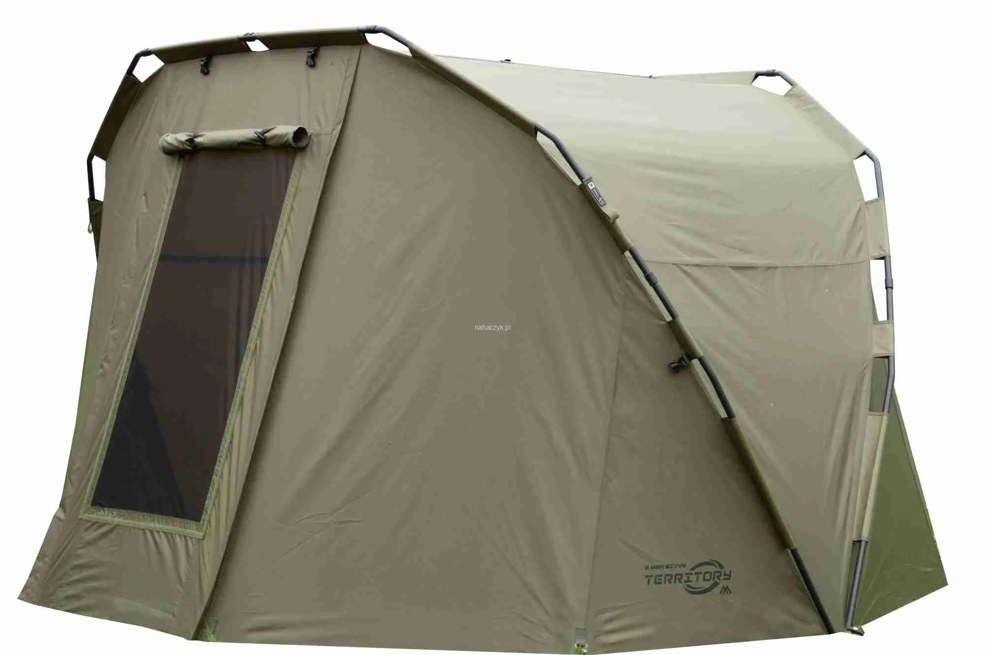 Świetny, dwuosobowy namiot karpiowy wykonany z mocnego materiału 210D i wzmocnionej ramy o średnicy rurek 19mm. Bez problemu mieści 2 standardowe łóżka i niezbędny sprzęt. Wyposażony w dodatkowe okno z tyłu dla niezbędnej wentylacji, oraz podłogę na rzep.