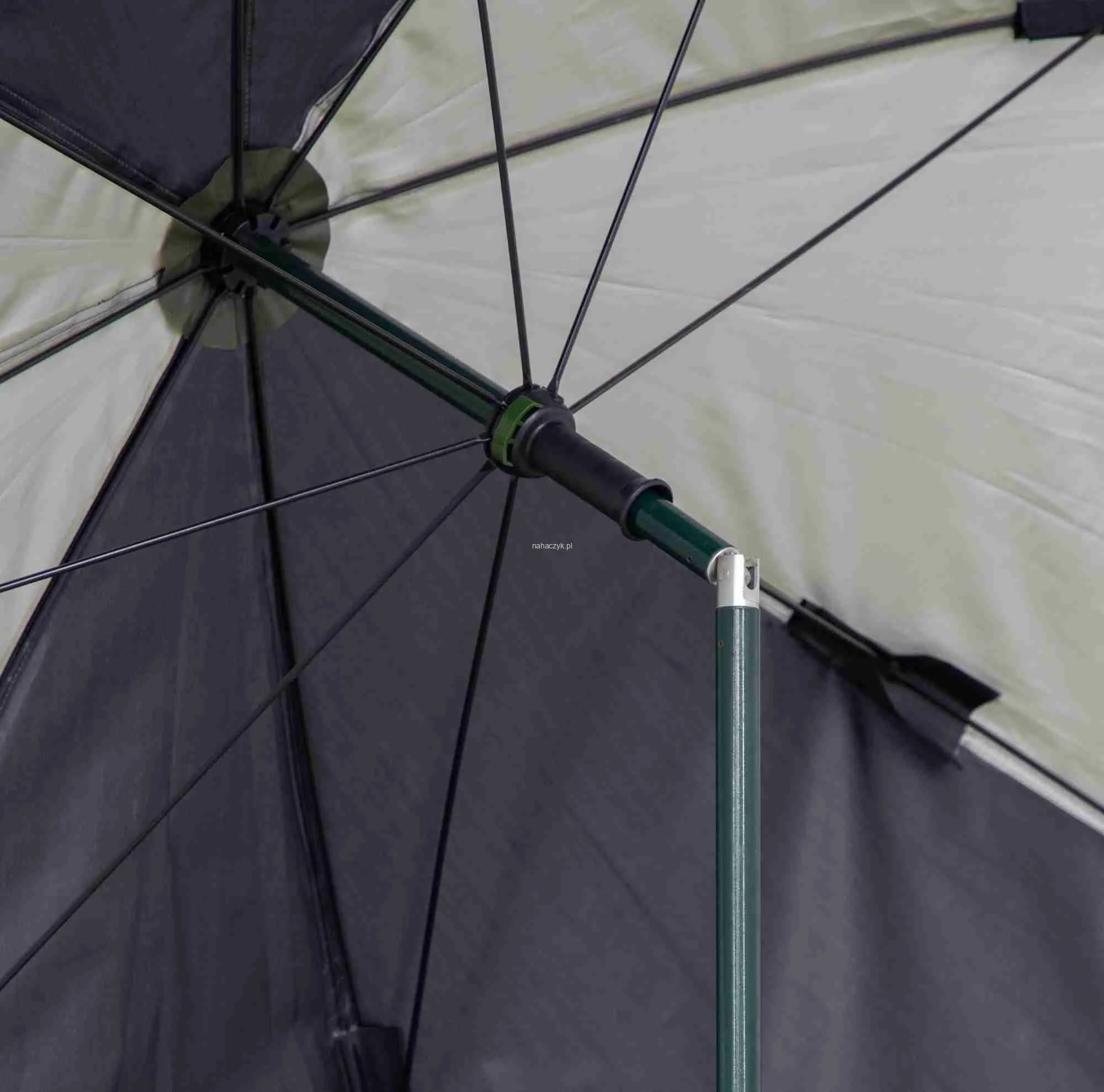 Wysokiej klasy parasol wędkarski o średnicy 250cm (mierzone po czaszy). W 100% wodoodporny, z podklejonymi szwami, regulacją kąta nachylenia i ściankami bocznymi. Idealne schronienie na każdą pogodę. Wykończony w designie serii Method Feeder.
